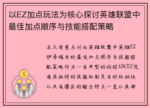 《龙之谷手游》是一款充满动感与策略的多人在线游戏,其中的“工程师”职业因其独特的战斗风格和丰富的技能系统,深受玩家的喜爱。要在游戏中充分发挥工程师的优势,合理的加点和技能选择至关重要。本文将详细解析《龙之谷手游》中工程师的加点攻略与技巧,从多个角度为玩家提供实用的建议,帮助玩家在战斗中轻松上手并实现最大化的输出与生存能力。我们将从以下四个方面进行全面分析:一是工程师的技能加点方法;二是不同加点方案...
